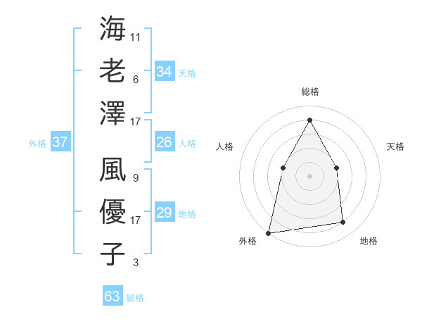 海老澤 風優子さんの総格は63画の4点!