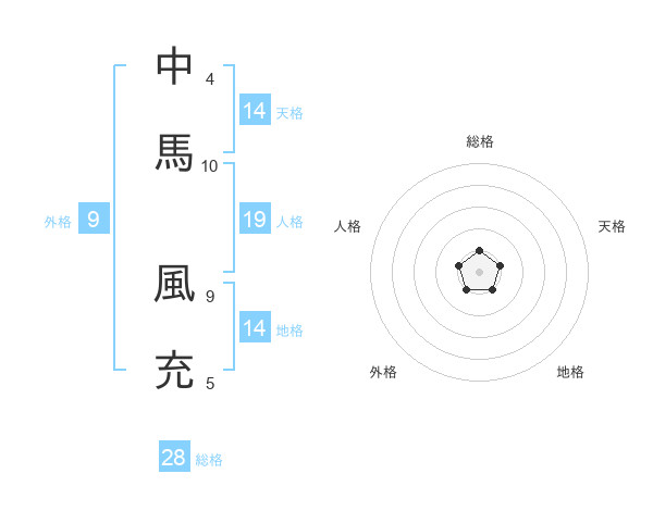 中馬 風充さんの地格は14画の1点!
