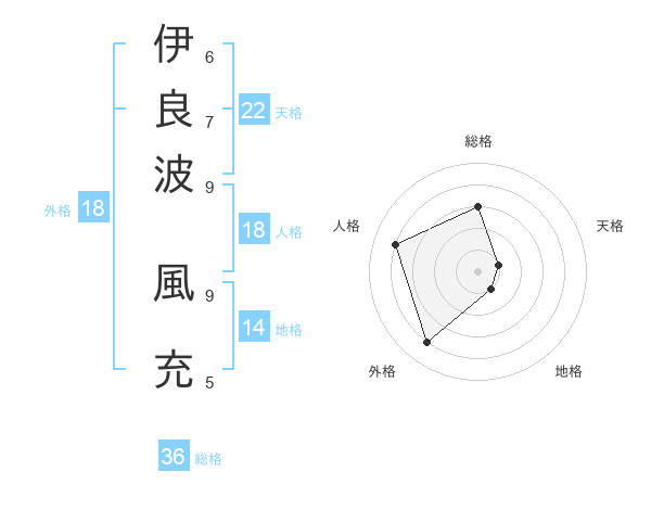 伊良波 風充さんを姓名の画数から五運を鑑定
