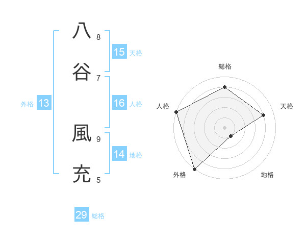 八谷 風充さんの総格は29画の4点!