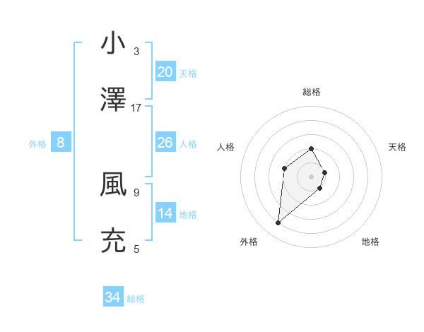 小澤 風充さんの総格は34画の2点!
