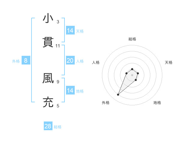 小貫 風充さんの地格は14画の1点!