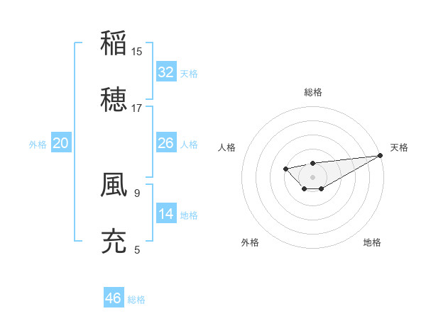 稲穂 風充さんを姓名の画数から五運を鑑定
