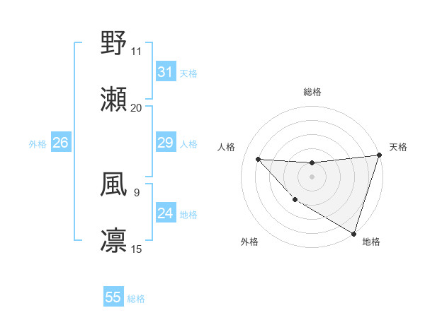 野瀬 風凛さんの天格は31画の5点!