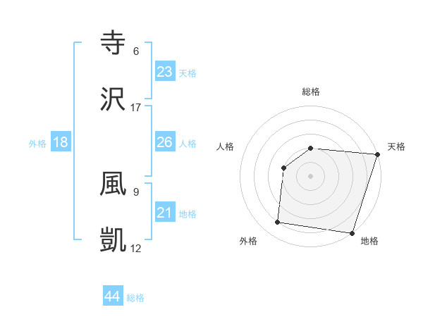 寺沢 風凱さんの天格は23画の5点!