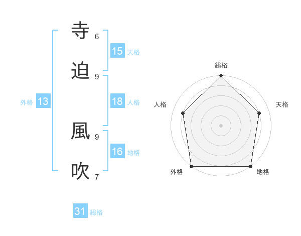 寺迫 風吹さんを姓名の画数から五運を鑑定
