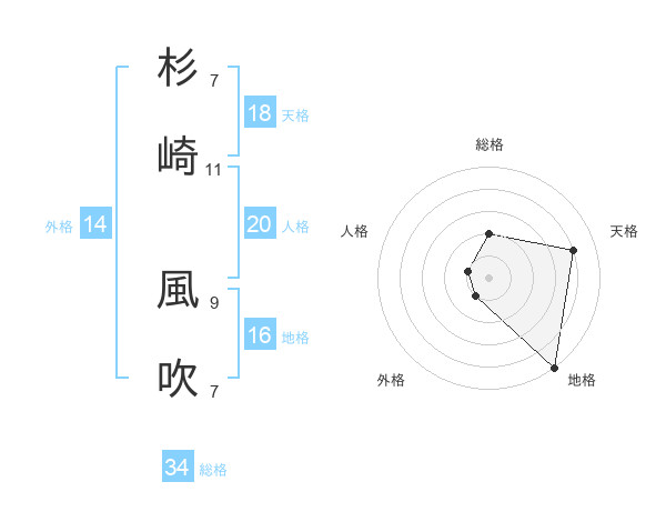杉崎 風吹さんの総格は34画の2点!