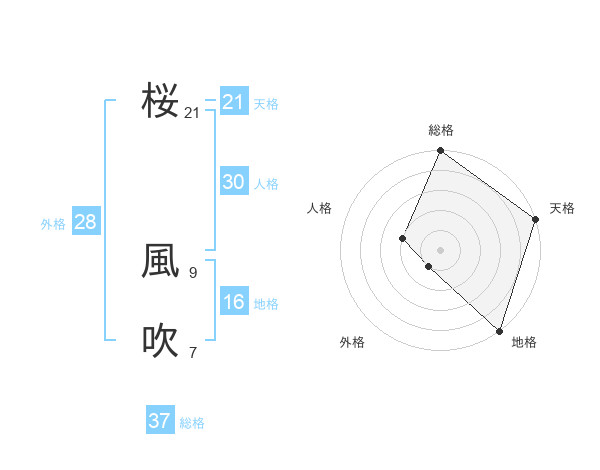 桜 風吹さんの総格は37画の5点!