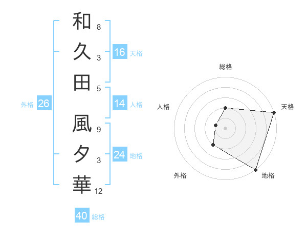 和久田 風夕華さんを姓名の画数から五運を鑑定