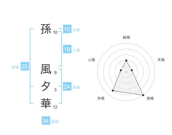 孫 風夕華さんを姓名の画数から五運を鑑定
