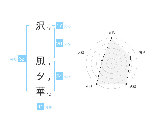 沢 風夕華さんを姓名の画数から五運を鑑定