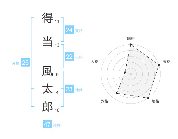 得当 風太郎さんを姓名の画数から五運を鑑定