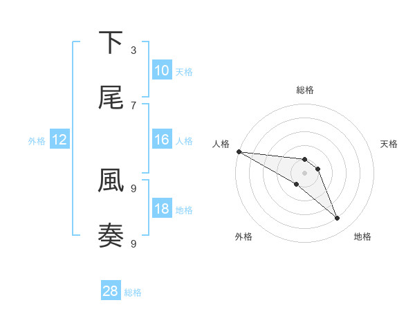 下尾 風奏さんを姓名の画数から五運を鑑定