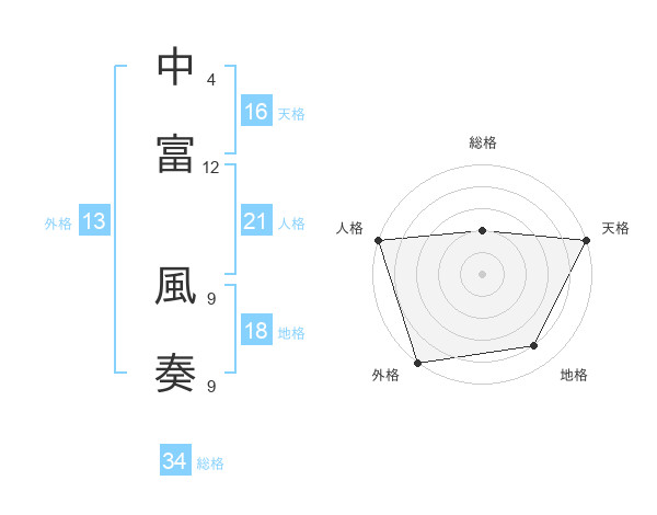 中富 風奏さんを姓名の画数から五運を鑑定