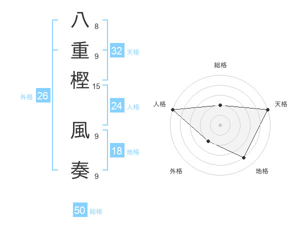 八重樫 風奏さんを姓名の画数から五運を鑑定