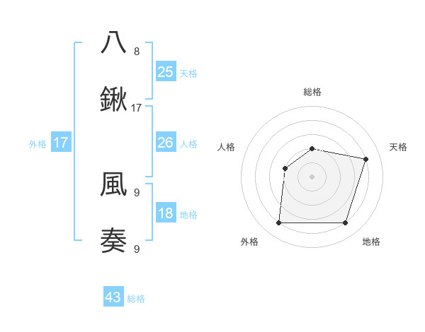 八鍬 風奏さんを姓名の画数から五運を鑑定