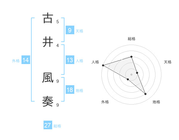 古井 風奏さんの総格は27画の3点!
