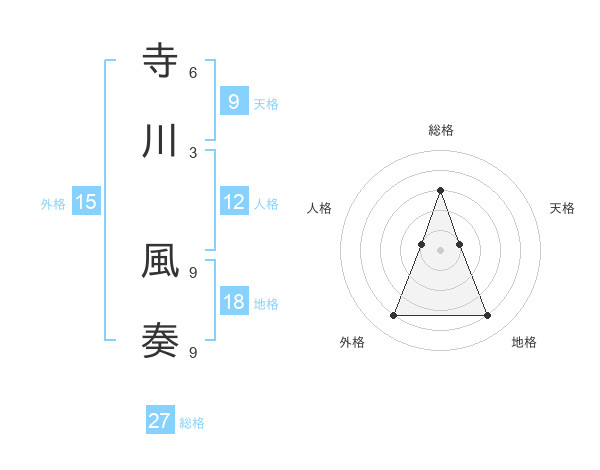 寺川 風奏さんの総格は27画の3点!