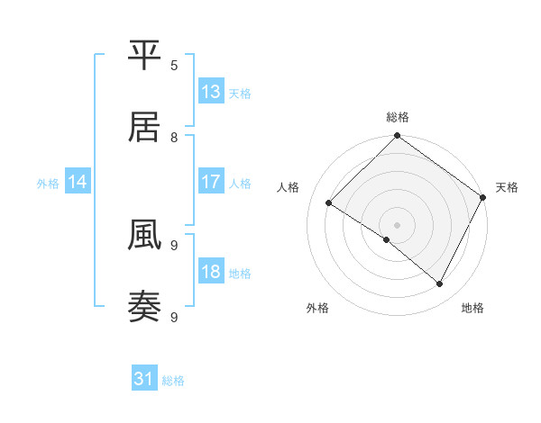 平居 風奏さんの総格は31画の5点!