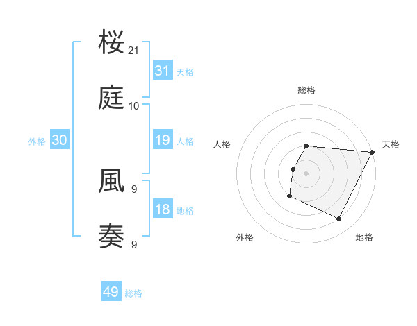桜庭 風奏さんを姓名の画数から五運を鑑定