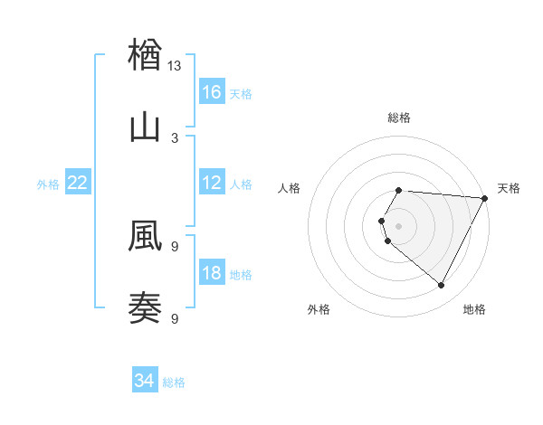 楢山 風奏さんを姓名の画数から五運を鑑定