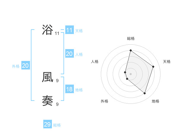 浴 風奏さんの総格は29画の4点!