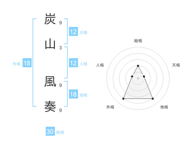 炭山 風奏さんの総格は30画の2点!