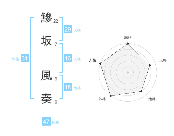 鰺坂 風奏さんの総格は47画の5点!