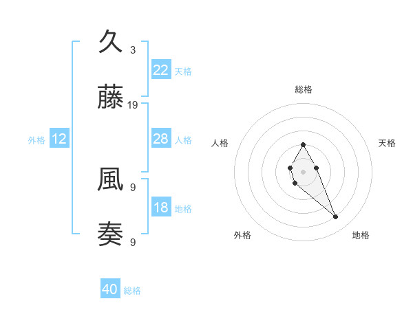久藤 風奏さんを姓名の画数から五運を鑑定