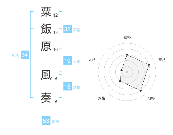 粟飯原 風奏さんを姓名の画数から五運を鑑定