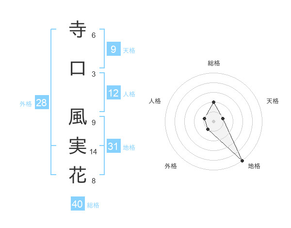 寺口 風実花さんを姓名の画数から五運を鑑定