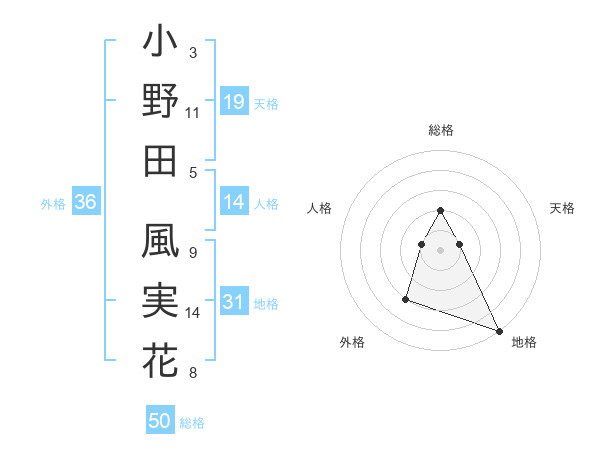 小野田 風実花さんを姓名の画数から五運を鑑定