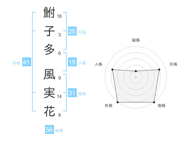 鮒子多 風実花さんの外格は41画の5点!
