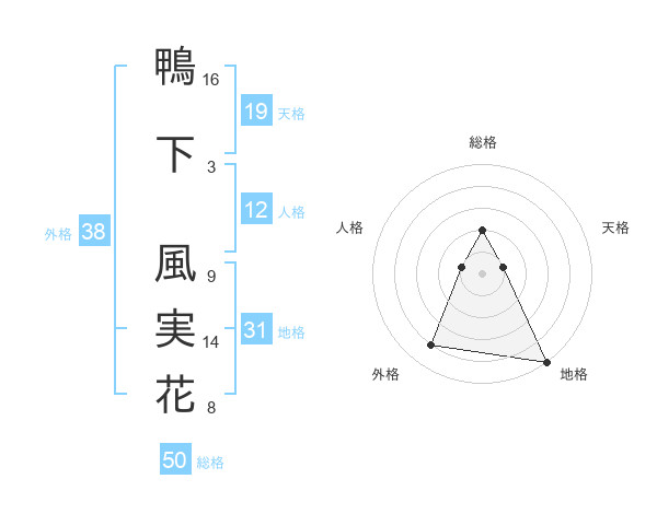 鴨下 風実花さんの外格は38画の4点!