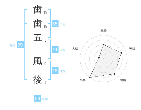 歯歯五 風後さんを姓名の画数から五運を鑑定