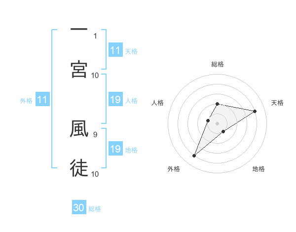 一宮 風徒さんを姓名の画数から五運を鑑定