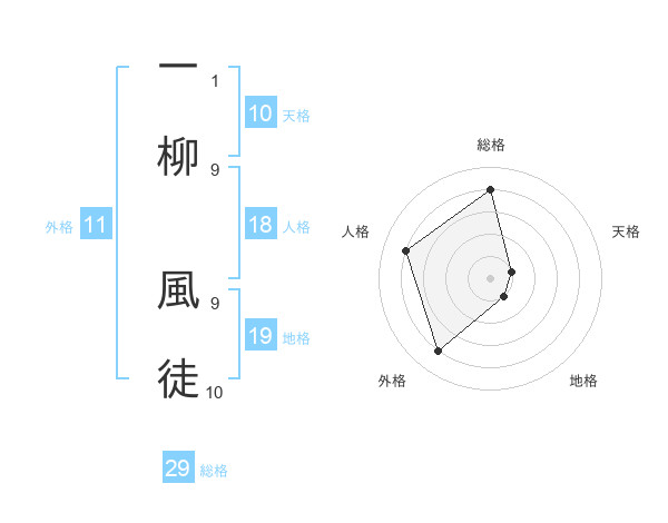 一柳 風徒さんを姓名の画数から五運を鑑定