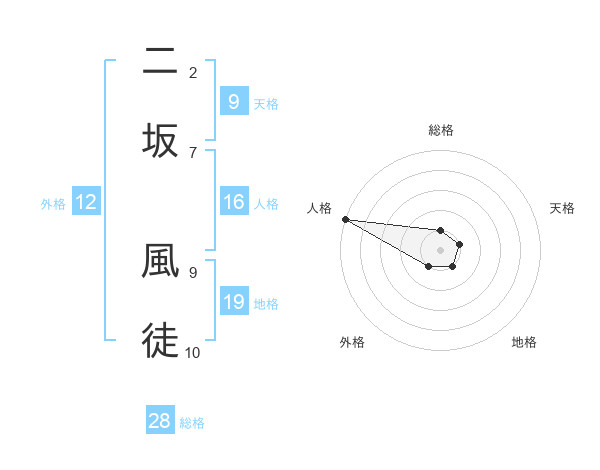 二坂 風徒さんを姓名の画数から五運を鑑定
