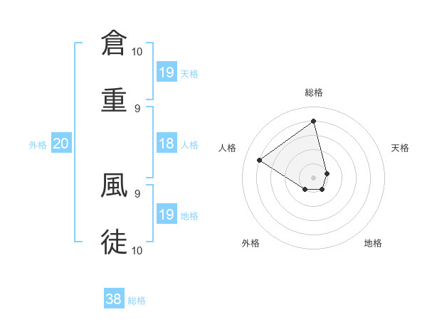 倉重 風徒さんを姓名の画数から五運を鑑定