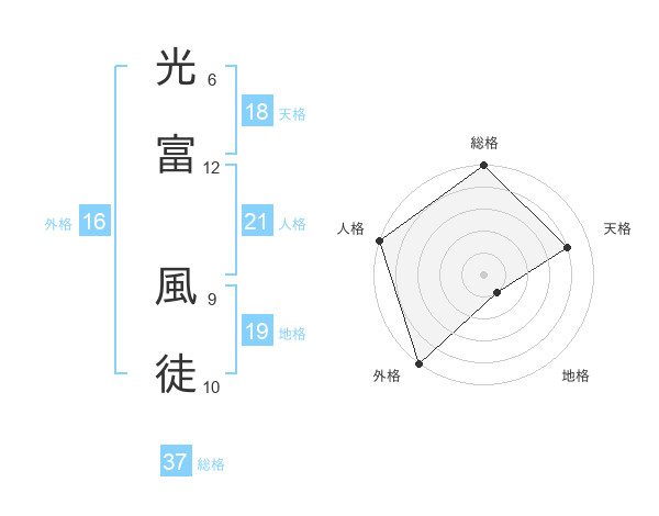 光富 風徒さんの総格は37画の5点!