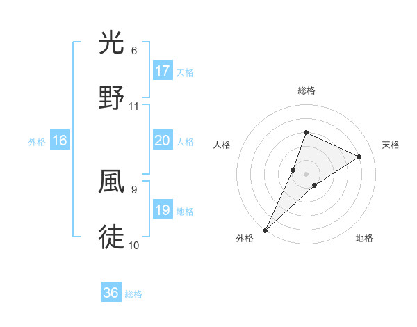 光野 風徒さんの総格は36画の3点!