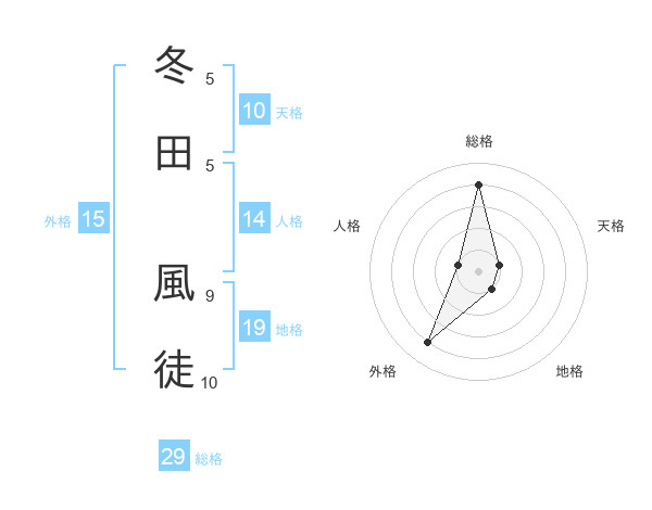 冬田 風徒さんを姓名の画数から五運を鑑定