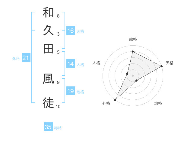 和久田 風徒さんの総格は35画の4点!