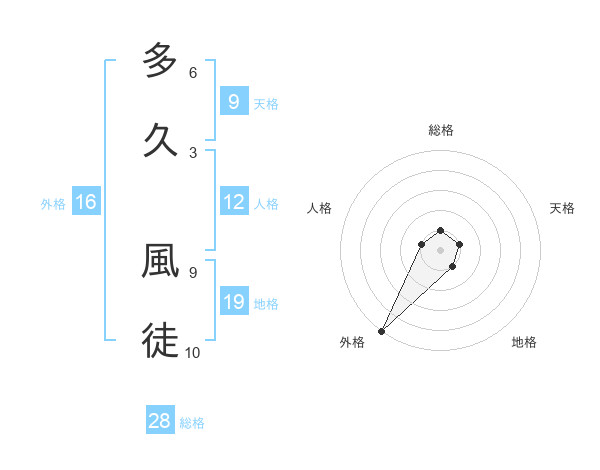 多久 風徒さんの総格は28画の1点!