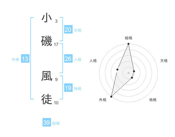 小磯 風徒さんを姓名の画数から五運を鑑定