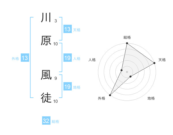 川原 風徒さんの総格は32画の5点!