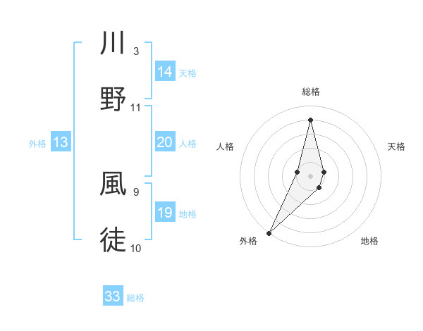 川野 風徒さんの総格は33画の4点!