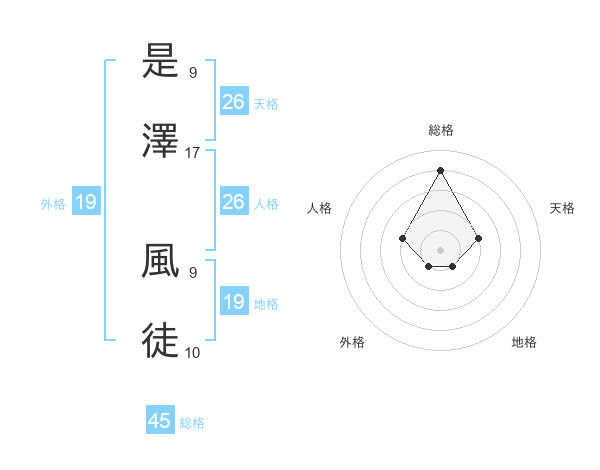 是澤 風徒さんを姓名の画数から五運を鑑定