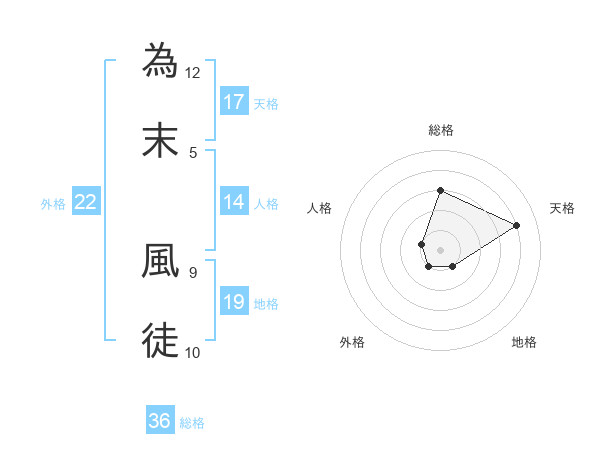為末 風徒さんの外格は22画の1点!