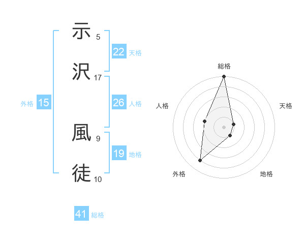 示沢 風徒さんの総格は41画の5点!